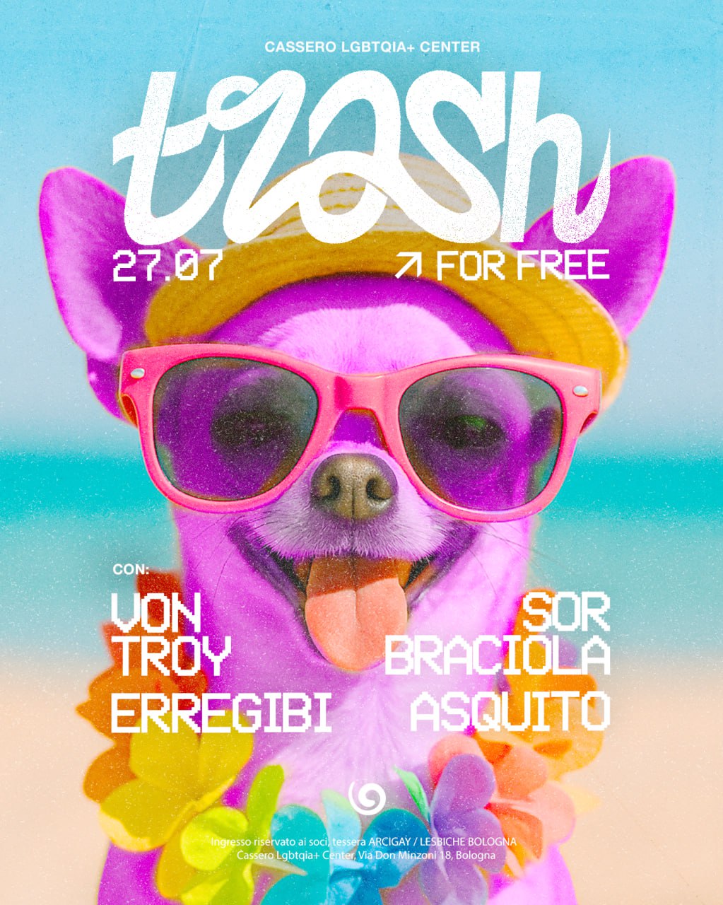 Cassero LGBTQIA+ Center Via Don Minzoni 18, Bologna, BO, ItaliaSabato 26 luglio chiudiamo la stagione estiva nel modo che ci riesce meglio: con la trash! Trash tutta la notte, tutto trash, musica trash, performer trashissime: amo, noi. 🔊Music by Sor Braciola @sor_braciola Von Troy @_vontroy 💅🏻On stage Erregibi @erregibi_ Asquito @asquito.eso 🎟 Ingresso gratuito 💳 Richiesta tessera Arcigay/Lesbiche Bologna