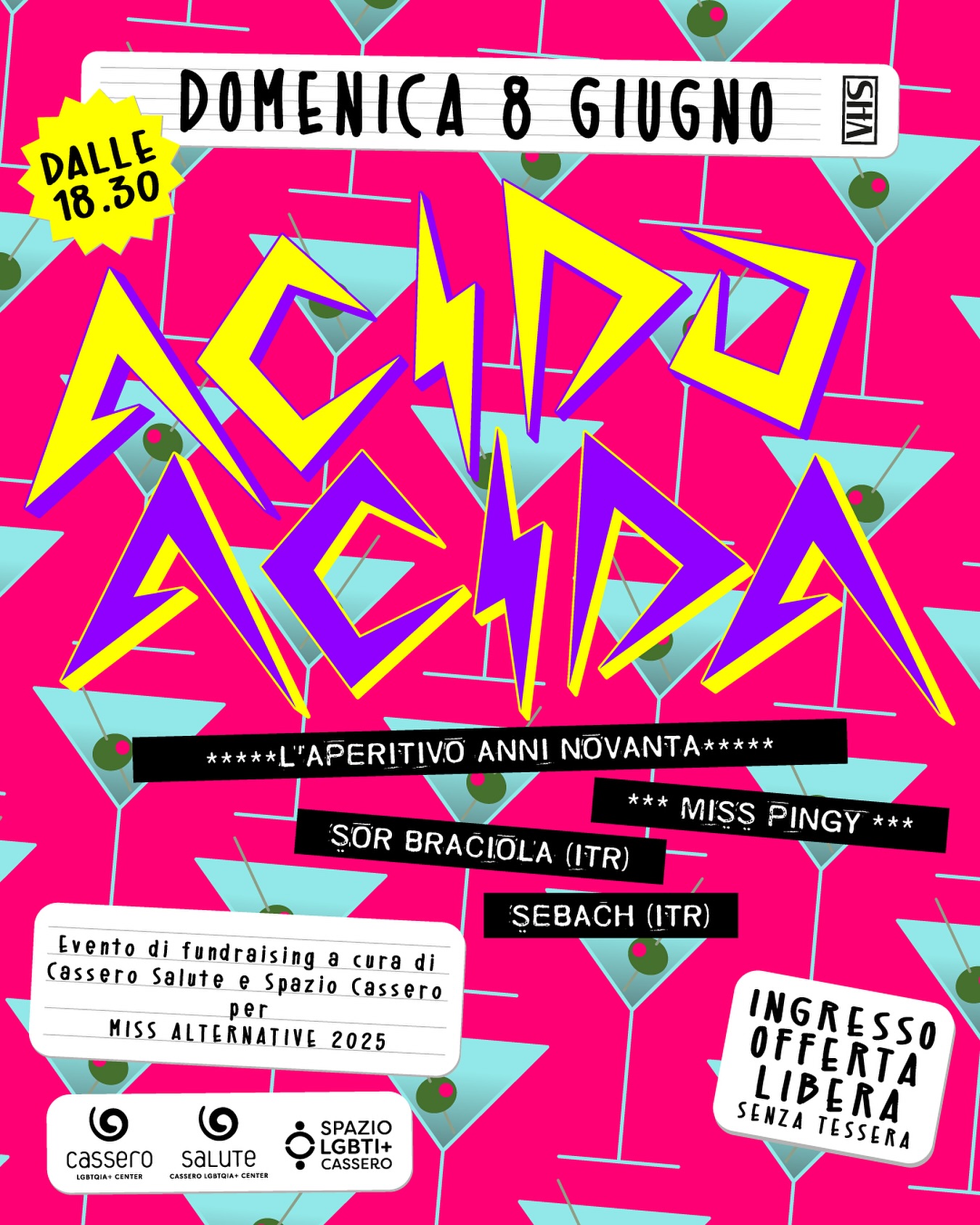 Cassero LGBTQIA+ Center Via Don Minzoni 18, Bologna, BO, ItaliaDomenica 8 Giugno torna ACIDO ACIDA L’aperitivo con i migliori beat degli anni 90 🪩 In consolle: @sor_braciola @sebachitr direttamente da @internazionaletrashribelle On stage: @misspingy.gonzales Un evento di FUNDRAISING a cura di @casserosalute e Spazio Cassero, per Miss Alternative 2025, nell’ambito del finanziamento del progetto Spazio Casa per rifugio e accoglienza di persone vittime di violenza e discriminazione…